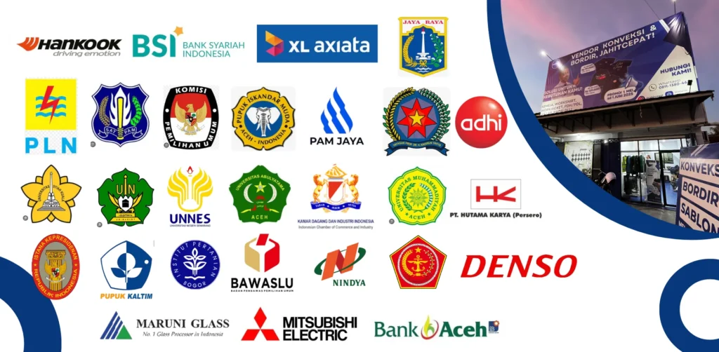 Bisa. Kami menyediakan pilihan bordir komputer dan sablon berkualitas tinggi untuk berbagai kebutuhan, mulai dari seragam kerja, jersey custom, kaos, sampai jaket. Hasilnya rapi, awet, dan bikin tampilan tim maupun brand Anda terlihat lebih profesional.