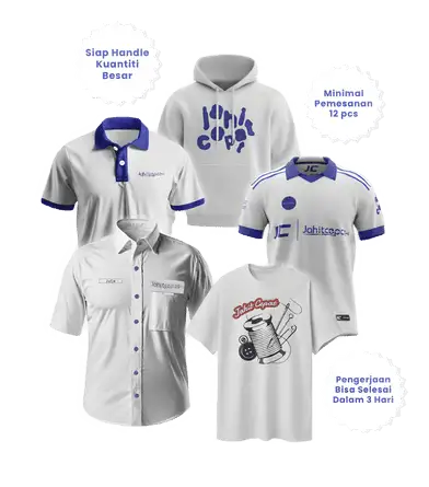 Kami melayani pembuatan berbagai jenis pakaian kerja seperti Kemeja, PDH/PDL, jaket, varsity polo shirt, Jersey,kaos, hingga denim dengan komitmen kualitas dan ketepatan waktu.